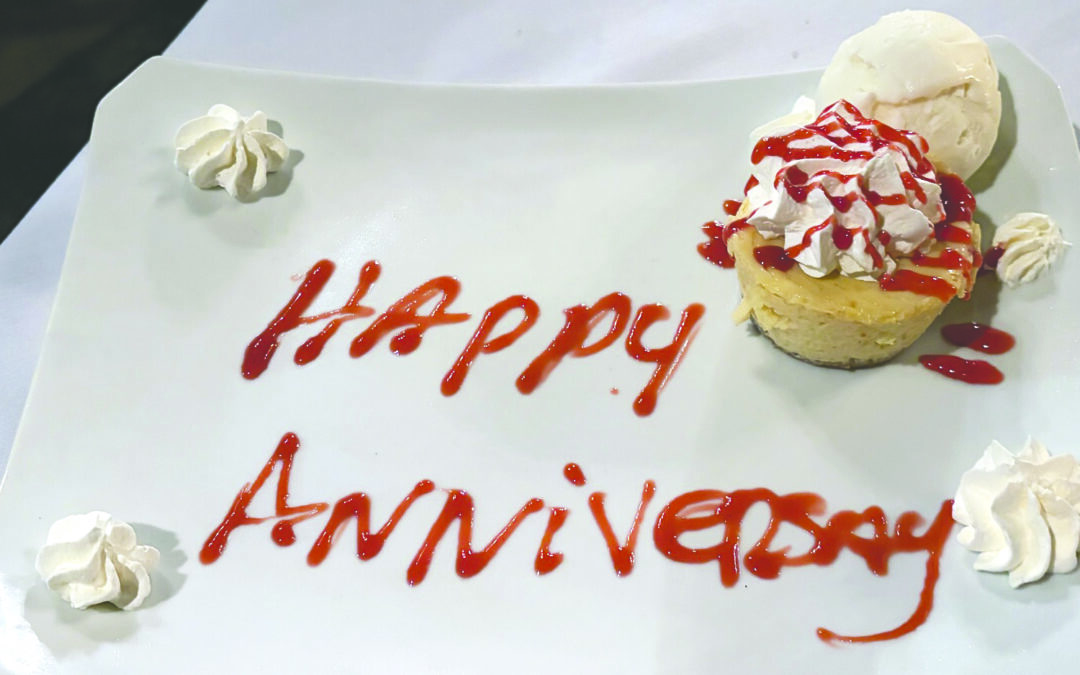 For dessert, Mike and I shared a slice of key lime pie with vanilla ice cream. Oh, my two times. It was beyond delicious, and sweet Scarlett had the chef drizzle “Happy Anniversary” on the dish.
